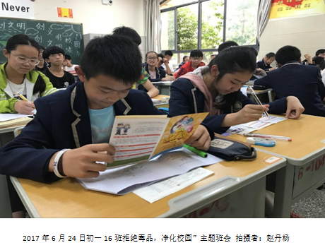 开展禁毒教育主题班会。为了使我校禁毒教育活动更加细化,各班主任精心设计禁毒教育教案,利用星期五班会课时间,组织学生开展以“拒绝毒品,净化校园”为主题的班会,通过学生人人参与讲,亲历禁毒教育,加深学生的禁毒意识,以实际行动来参与禁毒斗争,为争创文明班级,共建和谐校园,作出自己应有的贡献。