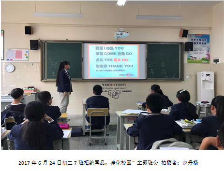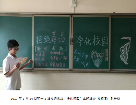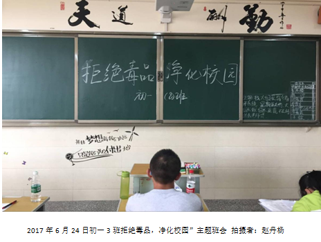 开展禁毒教育主题班会。为了使我校禁毒教育活动更加细化,各班主任精心设计禁毒教育教案,利用星期五班会课时间,组织学生开展以“拒绝毒品,净化校园”为主题的班会,通过学生人人参与讲,亲历禁毒教育,加深学生的禁毒意识,以实际行动来参与禁毒斗争,为争创文明班级,共建和谐校园,作出自己应有的贡献。