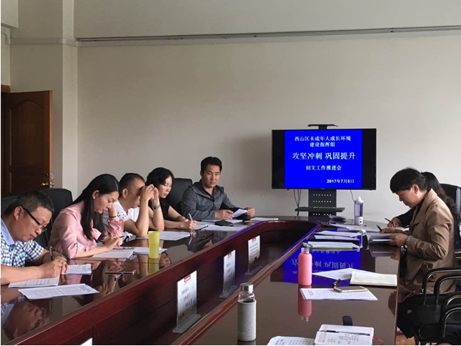 继前一天召开创文工作第九次周例会之后,西山区教育局于7月5日迅速召开“攻坚冲刺 巩固提升”创文工作推进会。教育局领导班子成员,十个片区督查组组长、联络员、创文办公室部分工作人员参加了本次会议。本次会议主要有三个议题:
