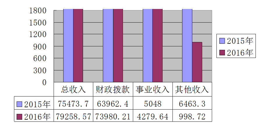 日博365体育在线2016年度收入合计79258.57万元。其中:财政拨款收入73980.21万元,占总收入的93.34%;事业收入4279.64万元,占总收入的5.4%;其他收入998.72万元,占总收入的1.26%。